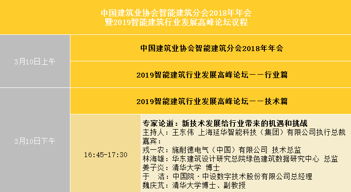 “2019中国建筑业协会智能建筑分会年会暨行业发展高峰论坛”将于3月10日在北京国际会议中心盛大开幕。