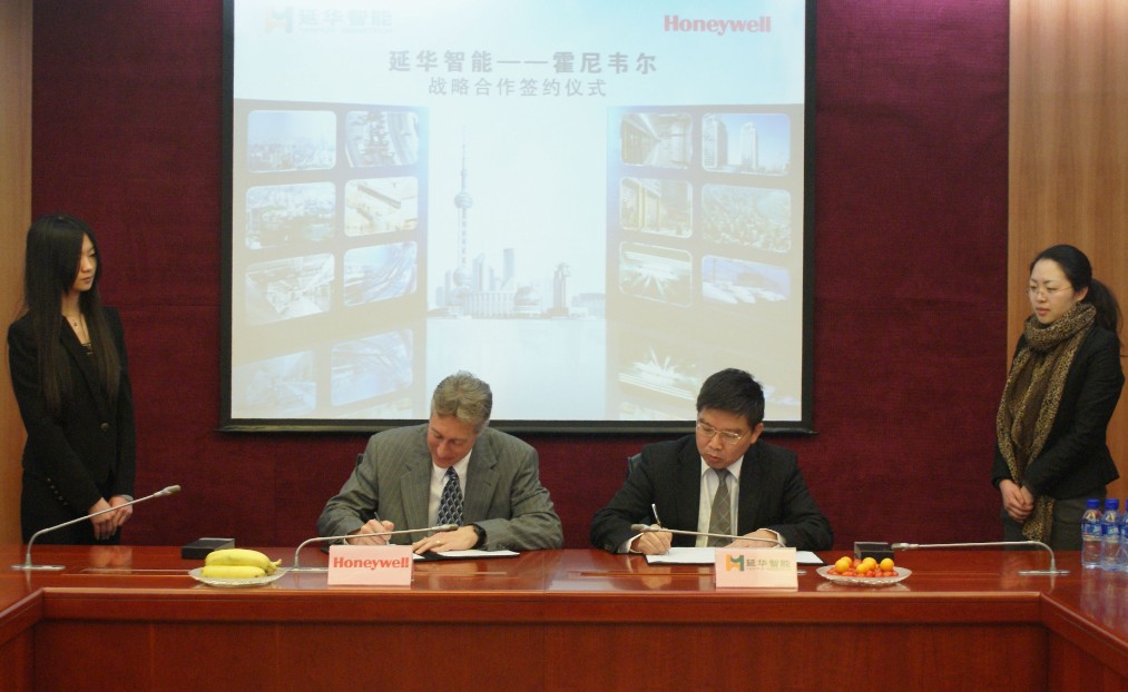 2012年3月7日上午,延华集团与霍尼韦尔安防集团战略合作会议在延华集团举行。出访中国的霍尼韦尔安防集团全球总裁罗仕文(Ron Rothman)与上海延华智能科技(集团)股份有限公司董事长胡黎明签订了《战略合作备忘录》,标志着延华集团与霍尼韦尔共同致力于推动安防领域整体解决方案应用的合作拉开序幕。